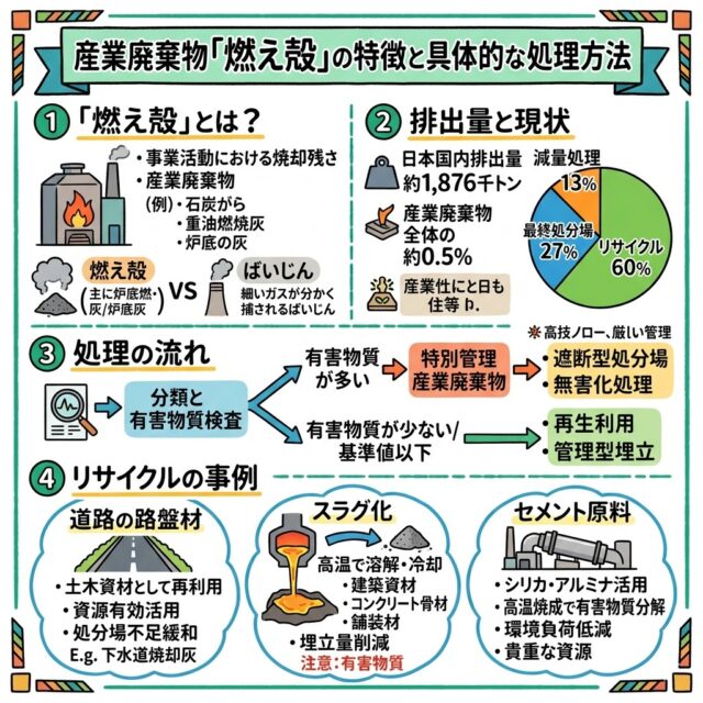 これらの燃え殻は、産業活動に密接に関連しており、適切な収集、運搬、処理が求められます。