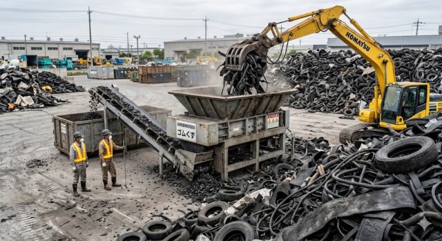 リサイクル処理では、ゴムくずを粉砕してチップや粉末状にし、燃料や道路の路盤材として使用する方法がよく利用されています。