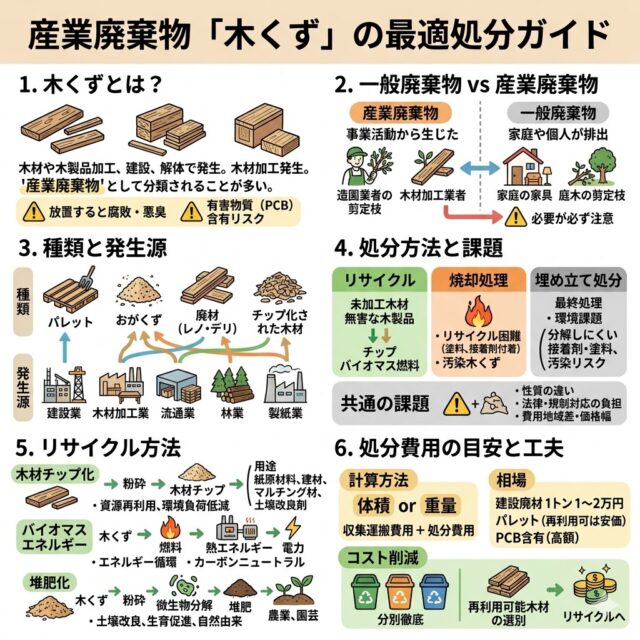 これらの業種では、木くずを適切に管理し、再利用や正しい処分を行うことが求められます。