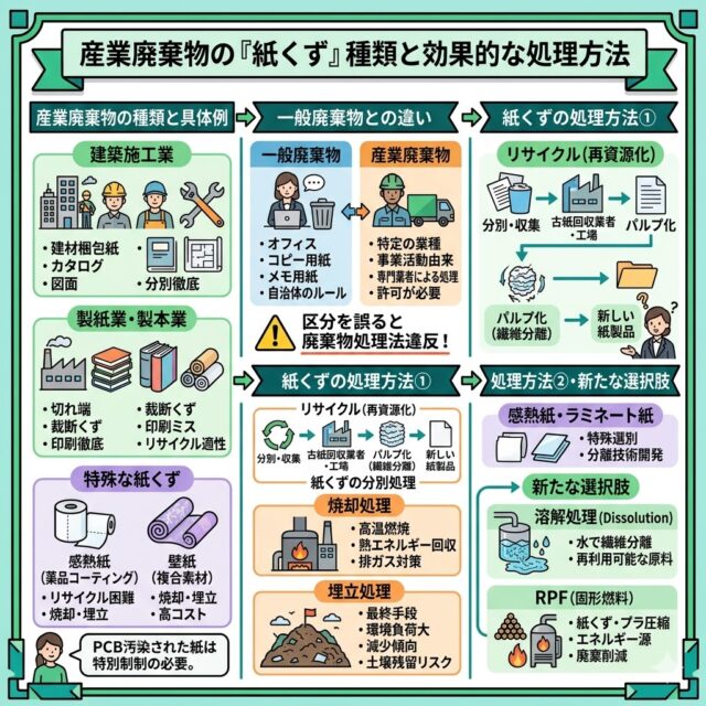 これらの紙くずは、特定の業種活動から生じたものであるため、「産業廃棄物」の一種として扱われます。